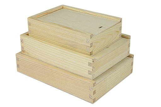 - Skrzynkę z drewna sosnowego o wymiarach ok 185x130x50 mm
