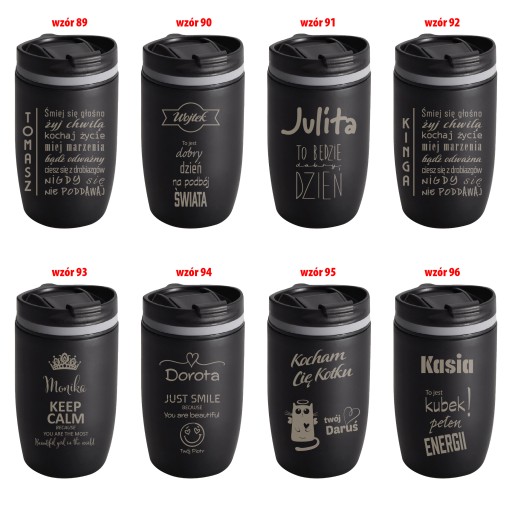 Każdy wzór jest edytowalny. Podaj imię, datę, tekst, logo... co chcesz zamieścić. Prześlemy wizualizację, a po akceptacji projektu wyślemy wygrawerowany kubek.