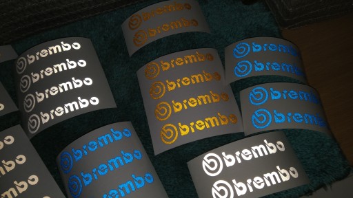 Naklejka "BREMBO" przeznaczona na zacisk hamulcowy WERSJA ODBLASKOWA