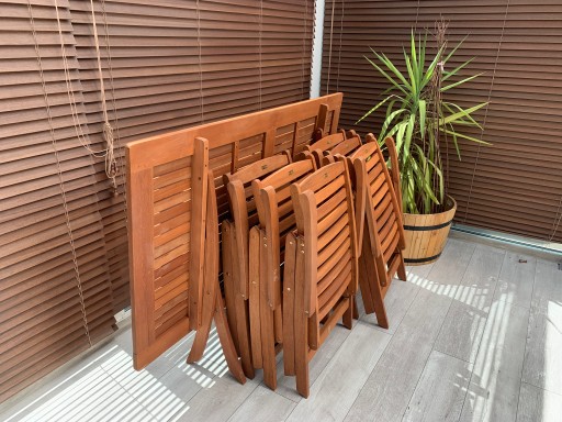 - Nakładaj olej do pielęgnacji drewna egzotycznego (zalecamy olej lniany spożywczy) na powierzchnię produktu czystą szmatką co 12 tygodni lub częściej, w zależności od warunków pogodowych.