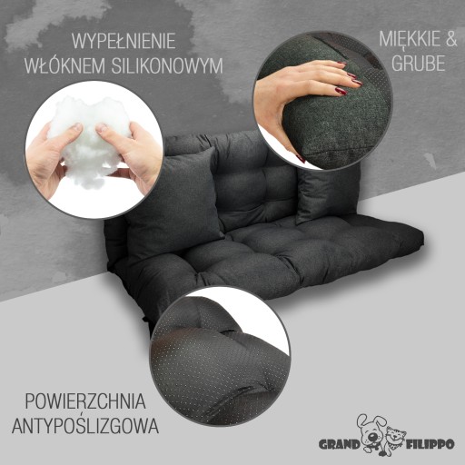 W naszych poduszkach na spodzie stosujemy Anti-Slip który posiada gumowe kulki zapobiegające przemieszczaniu się nawet na bardzo śliskich powierzchniach. Ponadto jest to materiał bardziej wytrzymały od zwykle stosowanego Wigofilu.