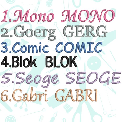 Kolor czcionki dowolny, jeśli nie zostanie podany dobierzemy pod kolor wybranych tkanin. Nie posiadamy metalicznych nici.