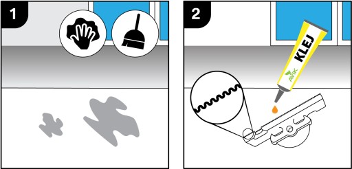 2. Zaczepy mocuj wyłącznie na suchej powierzchni. Niewielką ilość kleju zaaplikuj w pierwszej kolejności na zaczep.
