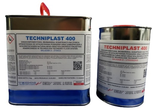 TECHNIPLAST 400 - Dwukomponentowa, bezbarwna, konstrukcyjna żywica epoksydowa do wykonywania posadzek oraz zabezpieczeń z wykorzystaniem naturalnego oraz kolorowego kruszywa kwarcowego.