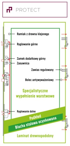 - * - Drzwi Protect Przeciwpożarowe oferują możliwość rozbudowy o pakiet dymoszczelności.