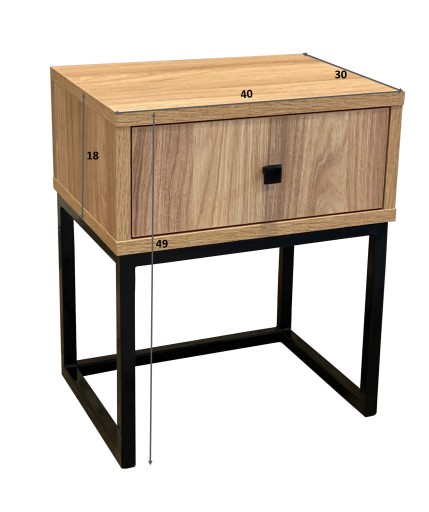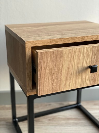 Szafka nocna Loft kolor drewno to uniwersalny produkt, który wpasuje się w niemal każdy styl. Możliwość wyboru w obrębie trzech wariantów kolorystycznych sprawia, że każdy znajdzie coś dla swojego wnętrza. Dzięki projektowi inspirowanego loftowym designem Twoja sypialnia, przedpokój, salon nabiorą funkcjonalności oraz wyjątkowości. Połączenie zaprezentowanych kolorów z ręcznie wykonanym stelażem to klucz to lekkiego, zgrabnego a zarazem eleganckiego look’u.