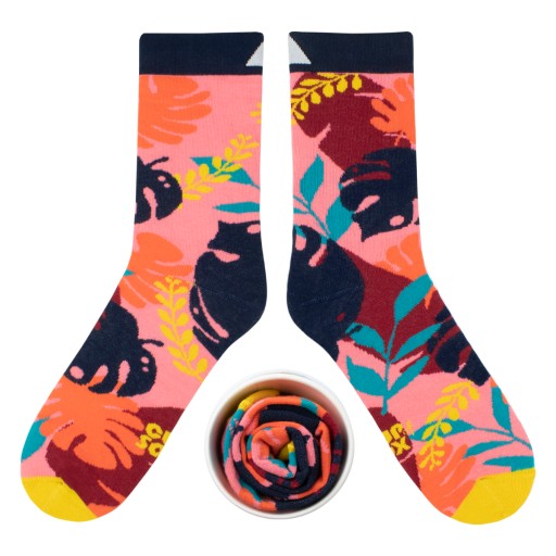 Skarpety JUNGLE powstały z miłości do kwiatów, dlatego z pewnością odnajdzie się tutaj osoba kochająca zielone rośliny. Wzór w monstery ucieszy oko każdego ogrodnika czy wielbiciela tych wielkich, dziurawych liści.