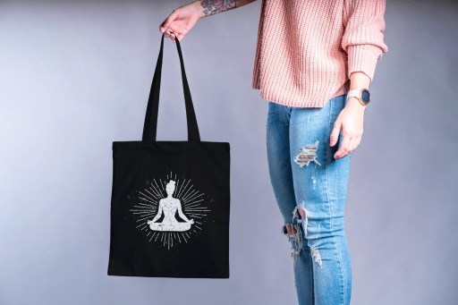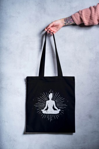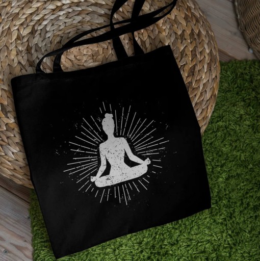✔️ Nadruk przedstawia graficzny motyw pozycji yogi.