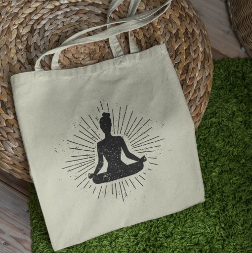 ✔️ Nadruk przedstawia graficzny motyw pozycji yogi.