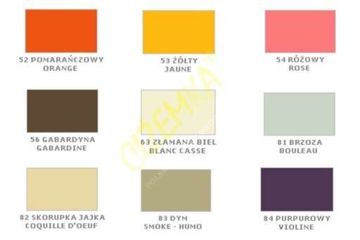 Szeroka paleta ponad 50 kolorów (DOSTĘPNE NA INNEJ AUKCJI).