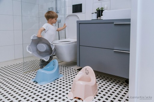Gumowe nóżki zapobiegają przesuwaniu się nocnika. Produkt jest bezpieczny i stabilny. Idealnie nadaje się do wygodnej i bezpiecznej nauki toalety.