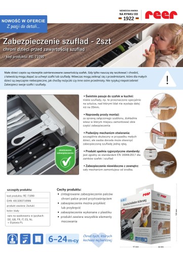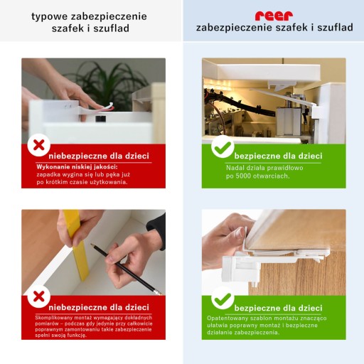 Zabezpieczenie zamknięcie szuflad atestowane REER - 2 opcje montażu - 2sztuki