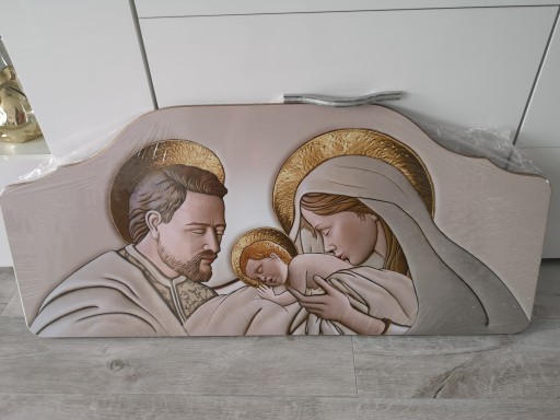 Piękny drewniany obraz przedstawiający Świętą Rodzinę, 50x100cm