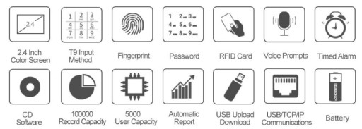 - Rodzaje autoryzacji: Odcisk palca, hasło, karta RFID 125 kHz