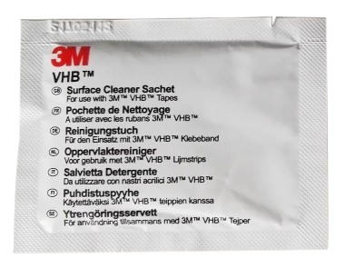 Optymalne właściwości klejenia uzyskamy odtłuszczając powierzchnię chusteczkami czyszczącymi 3M na bazie alkoholu izopropylowego. Chusteczki dostępne są na naszych aukcjach.
