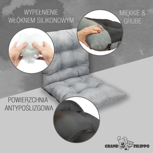 W naszych poduszkach na spodzie stosujemy Anti-Slip który posiada gumowe kulki zapobiegające przemieszczaniu się nawet na bardzo śliskich powierzchniach. Ponadto jest to materiał bardziej wytrzymały od zwykle stosowanego Wigofilu.