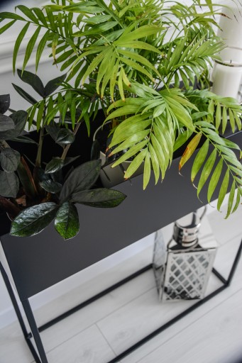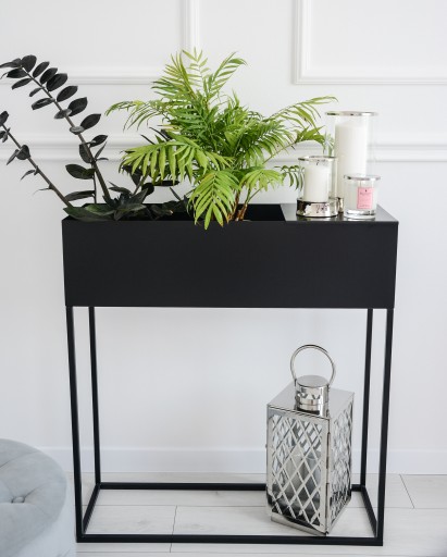 Nowoczesna, metalowa donica w rozmiarze XL - stojak na kwiaty, który może też pełnić funkcję konsoli do przechowywania gazet/książek, czy przedmiotów dekoracyjnych.