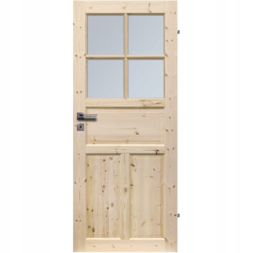 - WYPOSAŻENIE STANDARDOWE: skrzydło przylgowe bez ościeżnicy, zawiasy czopowe w kolorze srebrnym, zamek, w wersjach przeszklonych szkło 4mm mleczne, hartowane