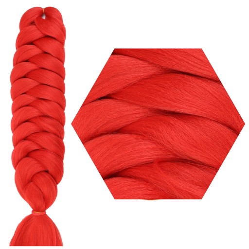 Długie pasma włosów w przepięknym wariancie kolorystycznym - czerwonym. Wykonane z gładkiego i przyjemnego w dotyku włókna syntetycznego.