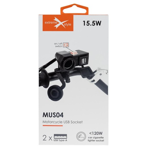 Gniazdo zapalniczki + 2 x USB – MUS04 jest stabilnym źródłem prądu 5 V dla dwóch urządzeń oraz wyjściem 12-24 V dla trzeciego. Niezależnie od tego czy korzystasz w czasie jazdy na motocyklu z telefonu, nawigacji GPS, kamery czy innego urządzenia gniazdo marki eXtremestyle® to rozwiązanie problemu zasilania ich.