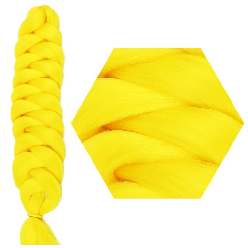 Długie pasma włosów w przepięknym wariancie kolorystycznym - żółtym. Wykonane z gładkiego i przyjemnego w dotyku włókna syntetycznego.