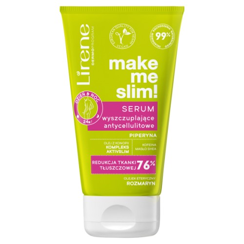 Maksymalnie skoncentrowana formuła serum została oparta na piperynie, antyoksydacyjnej substancji termogenicznej, zwiększającej penetrację do głębszych warstw skóry cennych składników aktywnych. Pobudza ona lipolizę oraz hamuje tworzenie nowych komórek tłuszczowych. Zaawansowany kompleks ActivSlim zawiera wyciąg z grzyba Hub i jęczmienia, a także saponiny, które wspomagają usuwanie wody i zbędnych produktów przemiany materii. Olej z konopi i masło shea zapewniają odpowiedni stopień odżywienia, przywracają skórze elastyczność i odpowiednie napięcie. Naturalny olejek eteryczny z rozmarynu ujędrnia, pobudza krążenie oraz pozostawia niezwykle aromatyczny zapach. Serum zawiera 98% składników pochodzenia naturalnego.