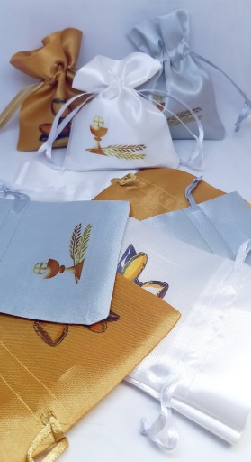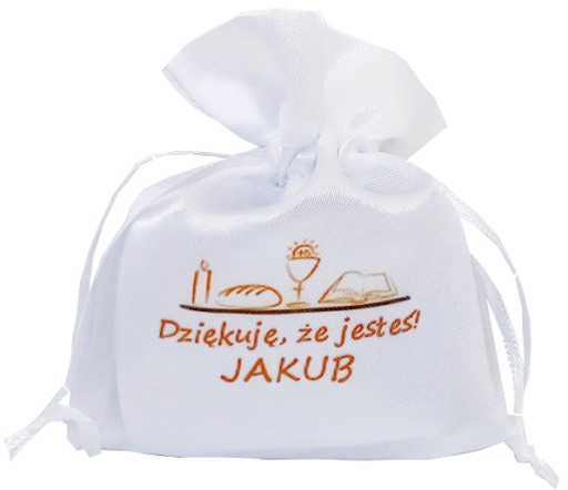WORECZEK SATYNOWY Z NADRUKIEM 8x10 cm -> BIAŁY NA KOMUNIĘ + imię dziecka.