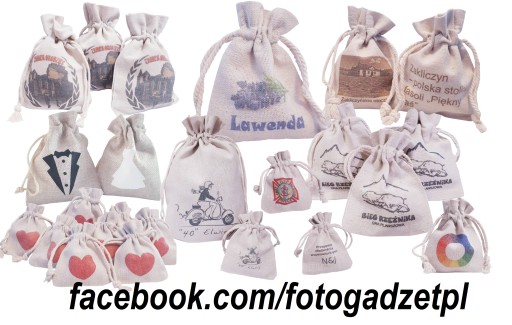 Woreczek z nadrukiem do wyboru dla gości. Do woreczka można włożyć: cukierka, magnes, breloczek, drewniane serduszko itp.