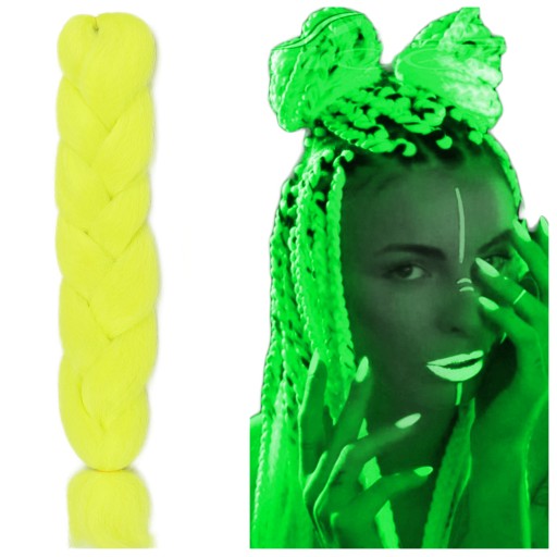 Włosy syntetyczne w przepięknym wariancie kolorystycznym - żółtym. Wykonane z gładkiego i przyjemnego w dotyku henlonu. Model świecący w ciemności.