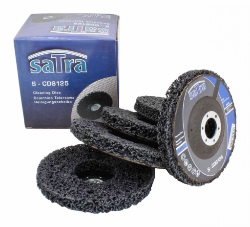 Dysk talerzowy posiada pierścień ścierny wykonany z twardej włókniny. Kompozycja nylonowych włókien ze ścierniwem zapobiega zapychaniu się narzędzi produktem ubocznym czyszczonych powierzchni jakim jest pył oraz umożliwia szlifowanie bez przegrzewania.