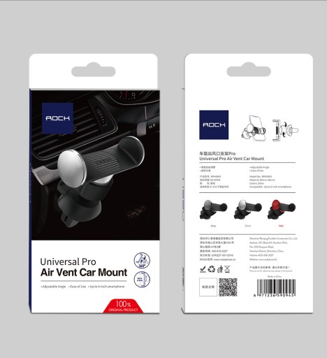 Uchwyt Samochodowy ROCK Vent PRO - jest to ulepszona wersja uniwersalnego uchwytu samochodowego, który pasuje do większości modeli telefonów z ekranem o przekątnej do 6 cali. Uchwyt montowany jest do kratki wentylacyjnej samochodu dzięki czemu nie zabiera miejsca na szybie i nie dezorientuje kierowcy. Mocowanie zostało usprawnione dzięki czemu uchwyt bardzo dobrze przylega do kratki wentylacyjnej. Posiada on obrotowe ramię z głowicą 360 stopni co zapewnia wygodę użytkowania.