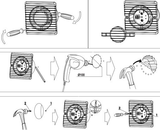 WENTYLATOR ŁAZIENKOWY FI 100 mm ŚCIENNY NATYNKOWY STANDARD