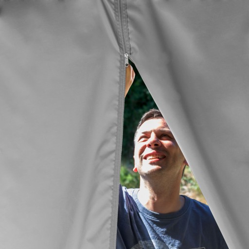 W zestawie znajdują się ściany boczne w kolorze szarym z poliestru ok. 180 g/m² z powłoką PA, które zapewniają jeszcze większy komfort. W zależności od pogody i nastroju można wedle gustu zmieniać aranżację pawilonu.