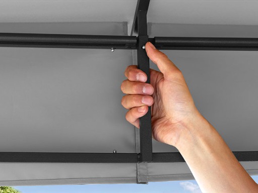 Konstrukcja została zaprojektowana w taki sposób, aby pawilon ogrodowy Sunset Classic był wyjątkowo łatwy i szybki w montażu. Wysokiej jakości system zatrzaskowy, zapewnia łatwą obsługę i długi czas użytkowania. Do montażu nie są wymagane żadne narzędzia.