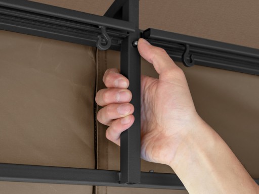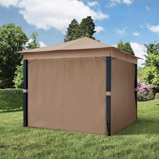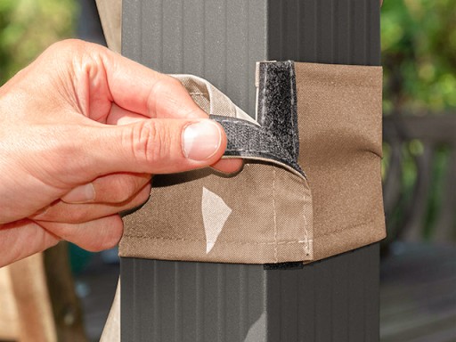 Połącz ściany boczne razem ze sobą za pomocą zamka błyskawicznego i zdecyduj, czy chcesz mieć pawilon otwarty, częściowo lub całkowicie zamknięty, w zależności od nastroju i potrzeby. Ściany boczne są bardzo łatwe w montażu: Wystarczy zawiesić je na systemie szyn - i gotowe!
