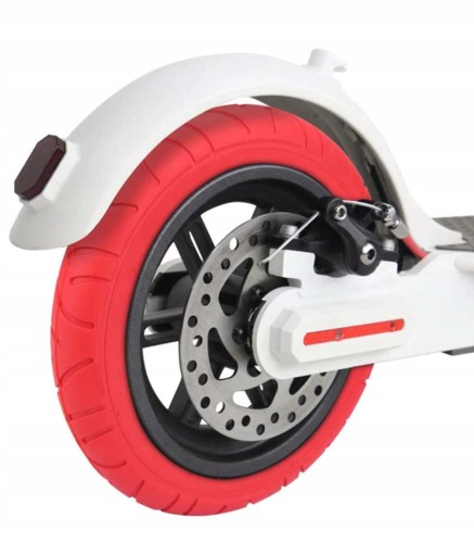 Pełen zestaw do konwersji hulajnogi elektrycznej Xiaomi M365, M365 Pro, Mi Scooter 1S, Mi Scooter Pro 2, Mi Electric Scooter 3 oraz Mi Scooter Essential na opony 10'' z czerwonymi oponami oraz czerwonymi elementami.