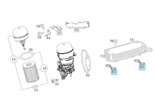 Oryginalny zestaw do wymiany uszczelek chłodniczki oleju w silniku Diesel 3.0 V6 Mercedes-Benz OM642.