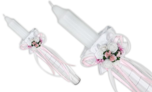 WIANEK KOMUNIJNY / ŚWIECA / BRANSOLETKA / RĘKAWICZKI / STROIK NA ŚWIECĘ