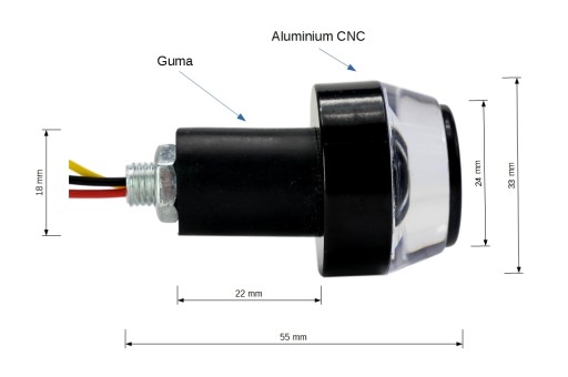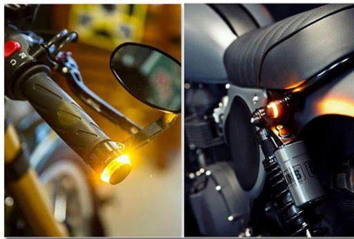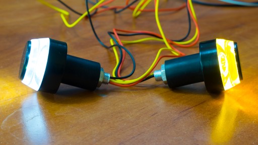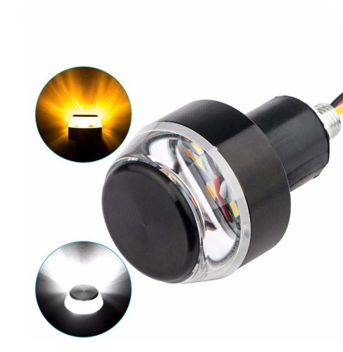 Końcówki kierownicy dostosowane do kierownicy 22 mm zintegrowane z wbudowanym światłem białym i pomarańczowym LED.