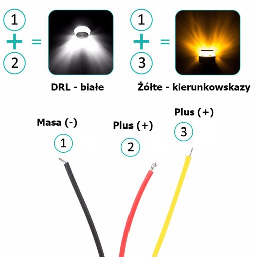 - przewód czerwony (+) światła białe