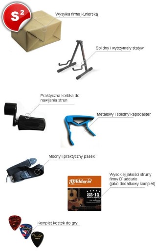 - Dodatkowo w cenie instrumentu zestaw S2 o wartości 130 zł