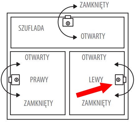 Zamek LEWY - mocowany na drzwiczkach meblowych gdzie zawiasy są po lewej stronie