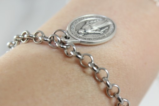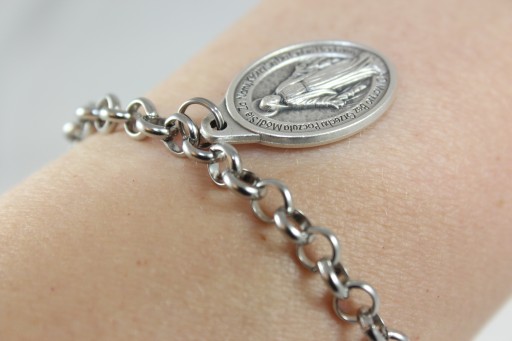 Pomimo wielkości medalika bransoletka jest bardzo wygodna w noszeniu - lekka