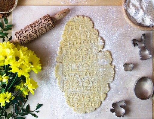Przed użyciem umyć wałek wodą i wysuszyć przyciskając ręcznik do wałka. Podczas przygotowywania ciasteczek posypać mąką rozwałkowane ciasto. Następnie odbić wzór wałkiem z wzorem.
