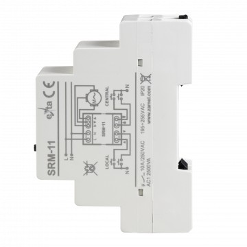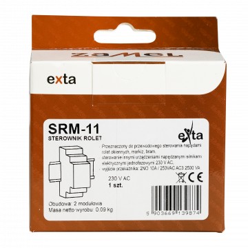 230 V AC. Sterowanie może być prowadzone lokalnie lub centralnie za pomocą przycisków żaluzjowych odbijających. W przypadku sterowania lokalnego można stosować przyciski podwójne i pojedyncze. W przypadku sterowania centralnego można stosować tylko przyciski podwójne. Pod kątem funkcjonalności sterownik umożliwia zaprogramowanie dwóch niezależnych ustawień komfortowych (dolnego i górnego) oraz maksymalnego czasu ruchu rolety. SRM-11 może pracować jako sterownik niezależny lub być łączony w sekcje. Specjalna funkcjonalność wejść sterowania centralnego umożliwia zablokowanie rolety w pozycji zamkniętej lub otwartej. Umożliwia to współpracę z systemami alarmowymi oraz dodatkowymi urządzeniami takimi jak stacja pogodowa, czujnik natężenia oświetlenia, czujnik deszczu, zegary sterujące. Sygnałami wyzwalającymi są impulsy z linii N. Dzięki temu w przypadku rozbudowanej instalacji ze sterowaniem centralnym poszczególne sterowniki mogą być zasilane z różnych faz przy zachowaniu wspólnej linii N.