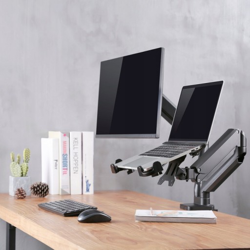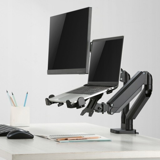 Takie rozwiązanie pozwoli oszczędzić miejsce na biurku, a montaż na uchwycie z regulacją wysokości umożliwi stworzenie profesjonalnej stacji roboczej do pracy stojąco-siedzącej.