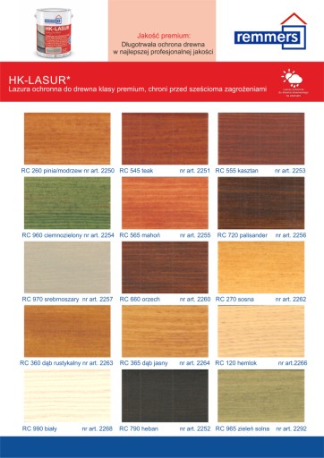 Należy przestrzegać polskiej normy PN-EN 927 Farby i lakiery - Wyroby lakierowe i systemy powłokowe na drewno zastosowane na zewnątrz.