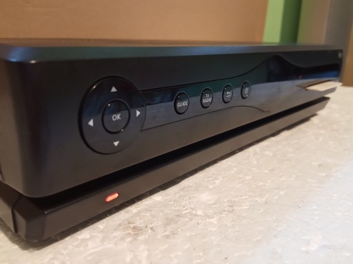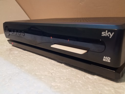 Na sprzedaż widoczny na zdieciach komplet : HUMAX SKY IS HD4 + EHD100SD . Po właczeniu słychac prace dysku a na ekranie jest niemiecki komunkat , karta SKY w komplecie , na panelu swieci sie wykrzyknik , bez pilota , sprzedaż bez zwrotu .