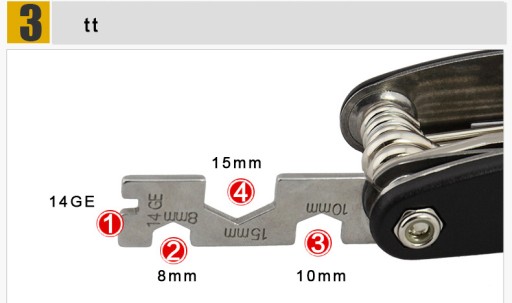 Zestaw szesnastu najważniejszych narzędzi służących do naprawy i regulacji roweru. Całość została zamknięta w kompaktowej formie scyzoryka. Po złożeniu mieści się w dłoni, dzięki małym wymiarom i niskiej wadze idealny do kieszeni lub sakwy rowerowej. W zestawie znajdują się klucze imbusowe, wkrętaki, nasadki wraz z adapterem, a także klucze płaskie oraz specjalny klucz do szprych.