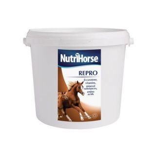 betakarotenu i witaminy E wspomaga płodność u koni hodowlanych oraz stymuluje krótszą, ale intensywniejszą ruję u klaczy. Beta-karoten ma pozytywny wpływ na funkcjonowanie jajników, wywołuje krótsze i intensywniejsze ruje, pozytywnie wpływa na płodność klaczy i wespół z witaminą E na utrzymanie ciąży, zapewnia optymalną sprawność reprodukcyjną ogierów i zwiększa witalność źrebiąt. Zespół witamin z grupy B zwiększa intensywność przemian metabolicznych u klaczy w zaawansowanej ciąży i karmiących oraz ogierów w okresie reprodukcji. Tauryna to aminokwas znajdujący się w mleku klaczy i zapewniający optymalny wzrost i rozwój źrebiąt. Tauryna wspomaga także system immunologiczny i sercowo-naczyniowy klaczy i źrebiąt. Karma zawiera naturalny przeciwutleniacz z rozmarynu. Codzienne podawanie karmy uzupełniającej NutriHorse REPRO w zalecanych dawkach zapewnia dobry stan zdrowia koni, pozytywnie wpływa na zaźrebianie oraz przebieg ciąży i laktacji u klaczy. Karma uzupełniająca nie zawiera wszystkich niezbędnych witamin i substancji mineralnych, i dlatego wskazane jest podawanie jej wespół z NutriHorse STANDARD w okresach reprodukcji.